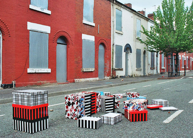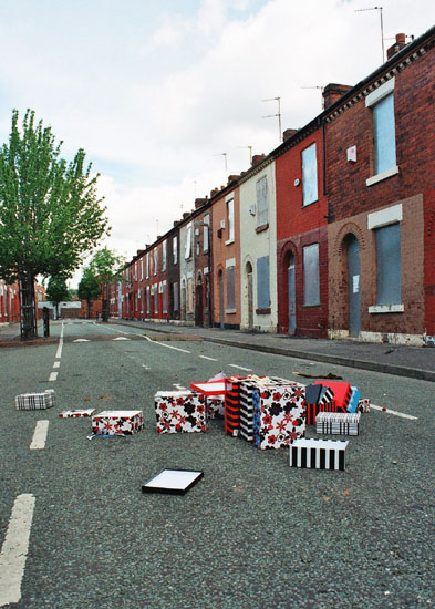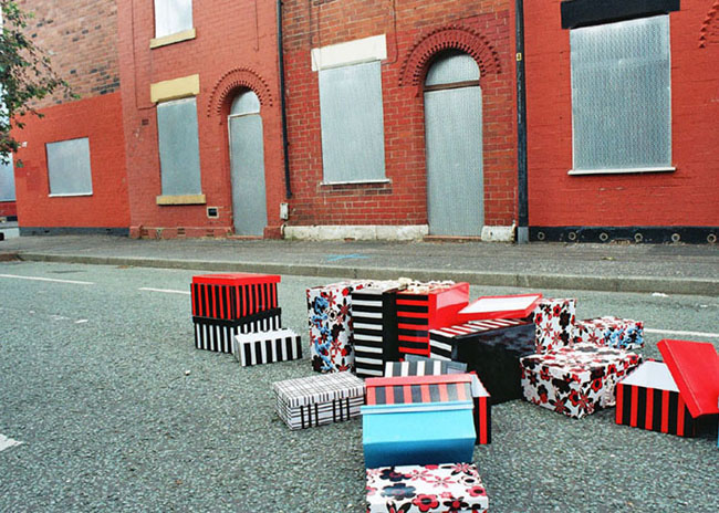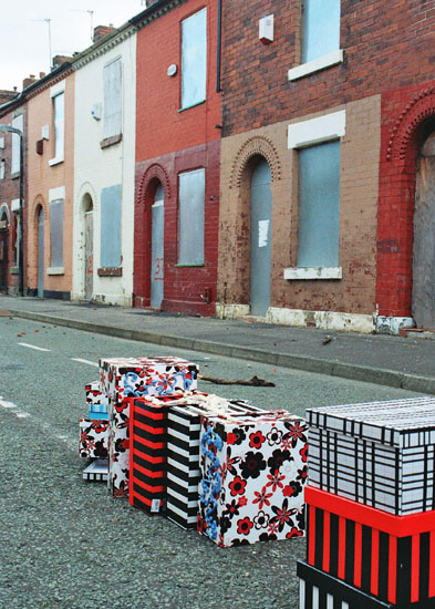 My interest in urban regeneration has developed through an exploration of themes around displacement and memory. This exploration led me to displace the work in to an area of social decay that is awaiting regeneration. The resulting scattered installation evoked notions of transience and change. I was also interested in exploring ideas around spatial dimension and the needs people have in relation to the space they need to live and work in. It led me to consider the impact on people of losing control of that space by the removal of their physical environment. People interact with their surroundings in profoundly important ways and this mental mapping enables people to define their environment. I also considered the individual use of space and the unconscious behaviour that establishes a personal territory evidenced in people's pattern of behaviour, routine of routes, use of shops etc.